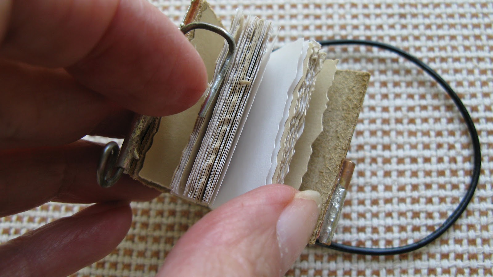 Lynne Spurlock held this class at my friend Jean Van Brederode's Studio.  We all made these adorable tiny Booklace's (book necklace).